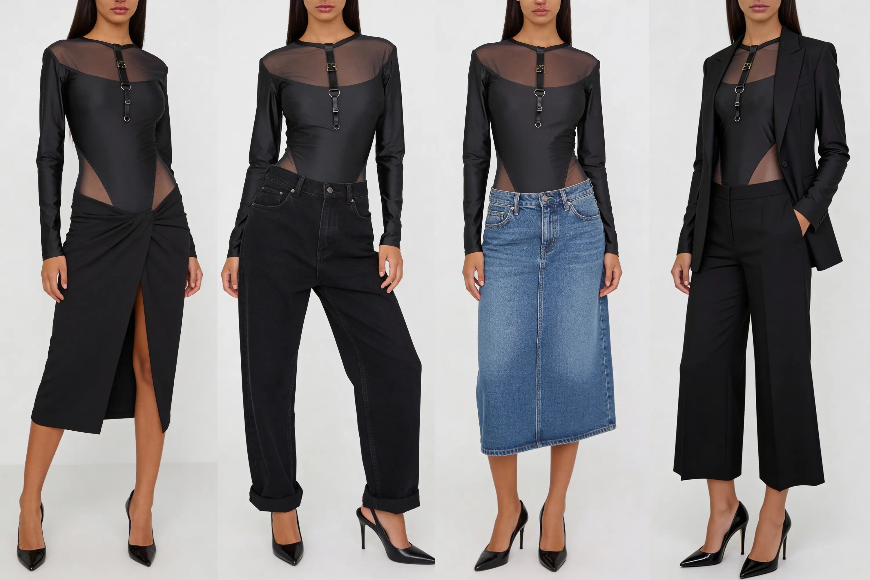 J’adore penser un body comme une pièce‑pivot : simple, technique et capable de traverser la journée sans effort. Voici comment je l’imagine, du matin au soir — des idées concrètes pour composer des looks qui respectent votre confort et affirment votre présence.